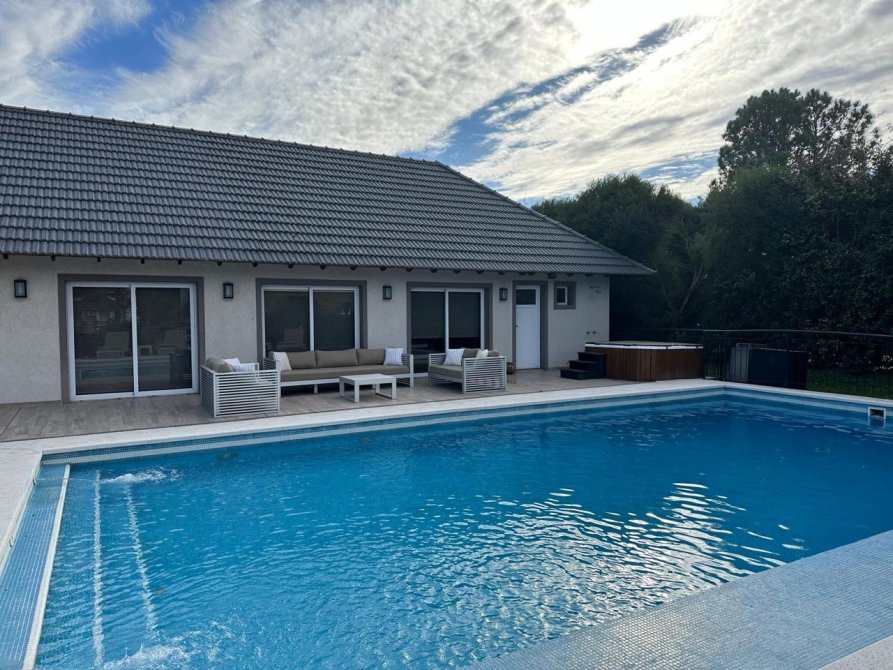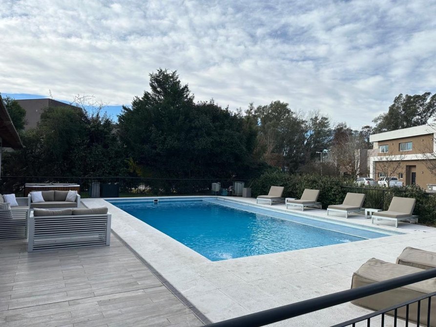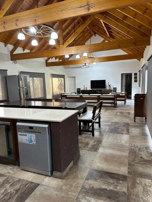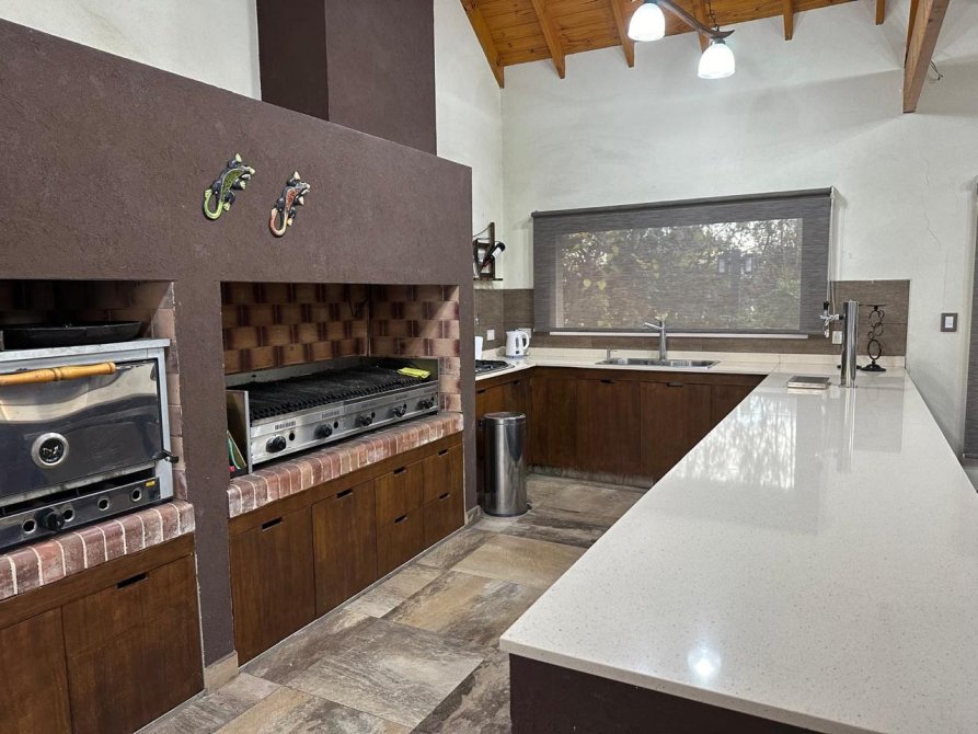 - Quincho con capacidad para 60 personas con baño y un dormitorio, parrilla, horno pizzero, heladeras en bajo mesada, equipos de aire acondicionado.