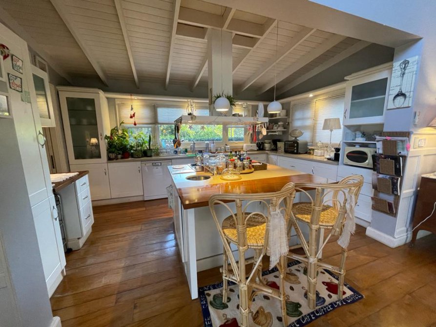 - Cocina con barra desayunadora y cocina industrial de 5 hornallas,