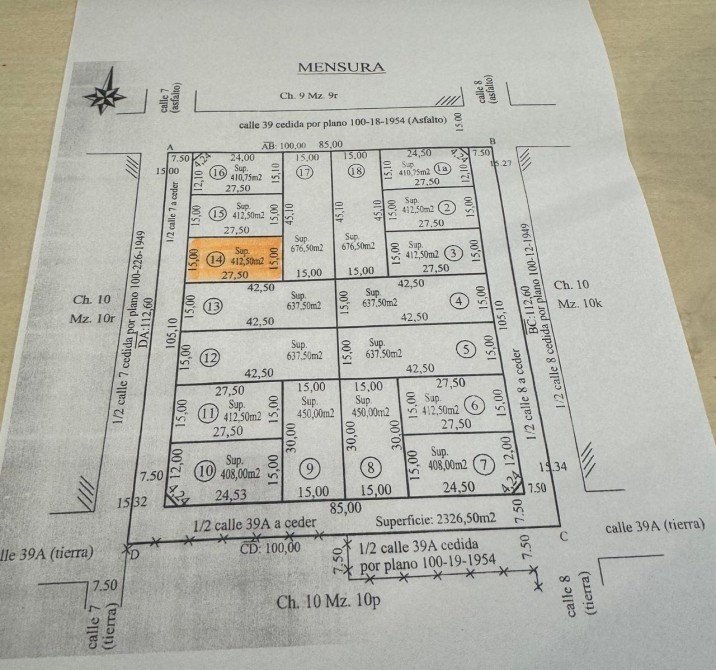DESDE 12,00m de frente por 24,50m de fondo Sup. 408,00m2 , a 676,50 m2.(15x45,10).